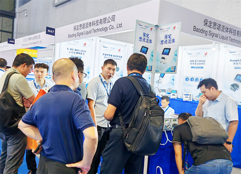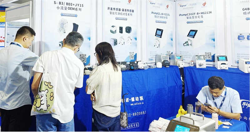 思諾流體攜眾多新品亮相展會(huì),有智能檢測(cè)蠕動(dòng)泵產(chǎn)品,半自動(dòng)灌裝流水線,AI智能蠕動(dòng)泵、灌裝系統(tǒng)蠕動(dòng)泵,新研發(fā)的蠕動(dòng)泵泵頭和OEM等,我們的銷售人員以專業(yè)的講解以及現(xiàn)場(chǎng)展示,向各位參展商講解產(chǎn)品亮點(diǎn)。