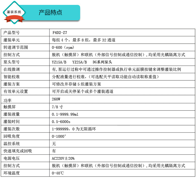 1.此灌裝系統(tǒng)由4通道組成,通道數(shù)量可定制,大可擴(kuò)展至32通道;可安裝YZ15、YZ25泵頭、DG泵頭;