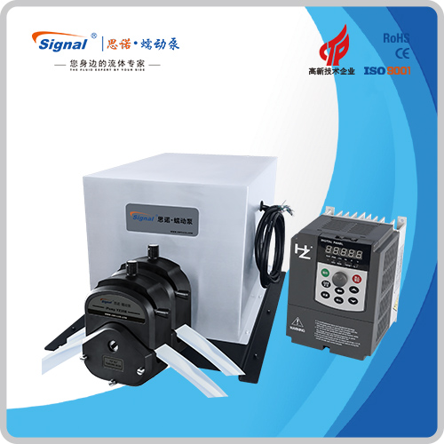 流量范圍:715-12033.33mL/min 免維護(hù)交流防爆減速電機(jī)驅(qū)動(dòng),變頻器調(diào)節(jié)轉(zhuǎn)速 電機(jī)扭矩大,可級(jí)聯(lián)雙泵頭 防爆等級(jí)DIIBT4,適合易燃易爆環(huán)境使用