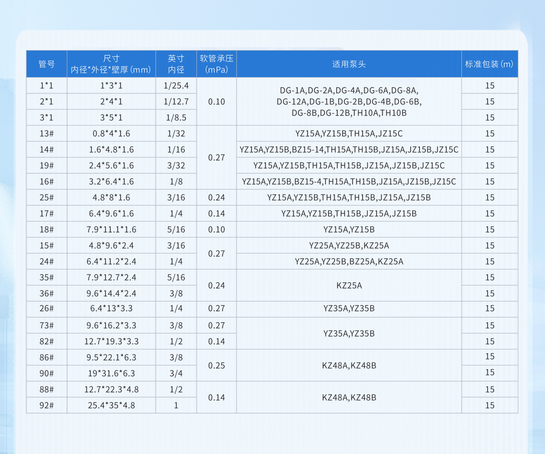高耐磨性,良好的回彈性,軟管壽命長