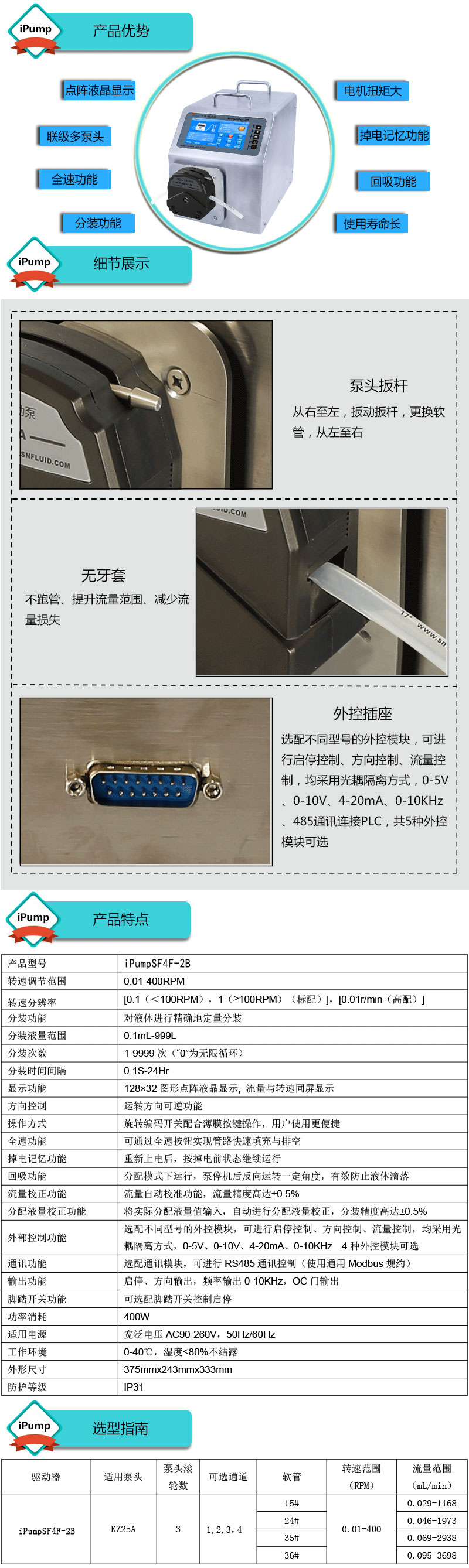 1.流量范圍:0.029-3698mL/min 2.兩種工作模式,流量模式與分配模式可選 3.具有流量校正、分裝液量校正功能 4.分裝精度高達(dá)±0.4%以內(nèi) 5.采用伺服電機(jī)驅(qū)動(dòng),控制準(zhǔn),動(dòng)力強(qiáng)勁 6.線路板全部三防漆處理,防腐、防潮